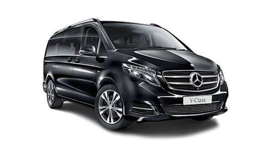 Fleet of luxury vehicles like Mercedes-Benz sedans and V-Class.